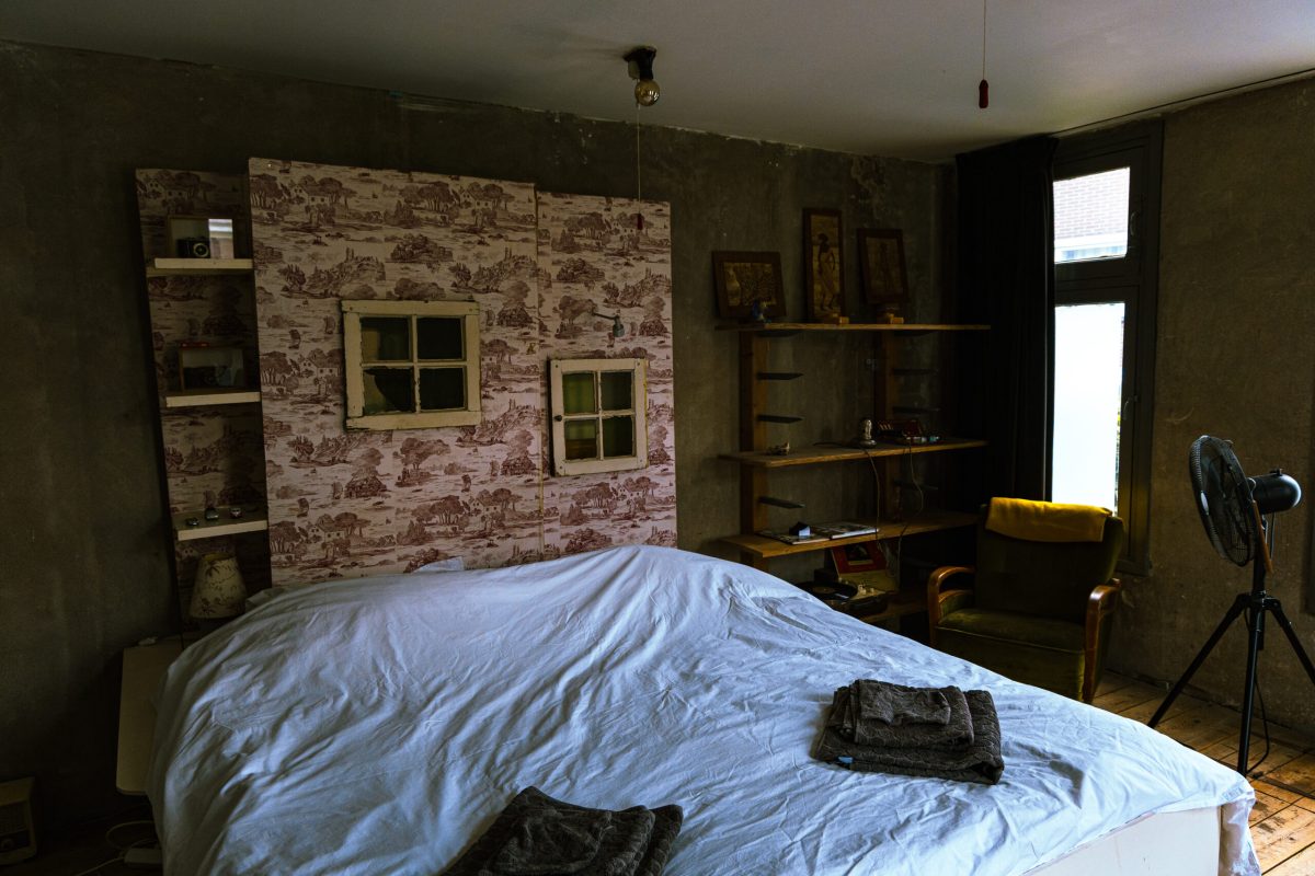 Nous ne nous attendions pas à cela, mais le mélange de style fonctionne bien. Nous sommes surpris d’avoir accès aux anciennes Triumph et sommes émerveillés par l’endroit. C’était en fait une ancienne fromagerie. Et oui, nous sommes à Gouda ! Nous voyons encore les trappes dans le sol pour ventiler l’entrepôt. (Adresse du airbnb sur demande)